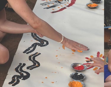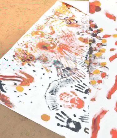 As the practice shifted from the mat to the canvas, we began painting with our hands. No brushes, no rules, no expectations. Just touch, color, and emotion moving freely. This transition from movement to art allowed emotions to surface naturally. Joy, heaviness, relief, gratitude, and sometimes sadness all found a place to be released. In this space, painting became a continuation of yoga, a true self practice where what no longer belonged in the body was gently thrown out onto the canvas.