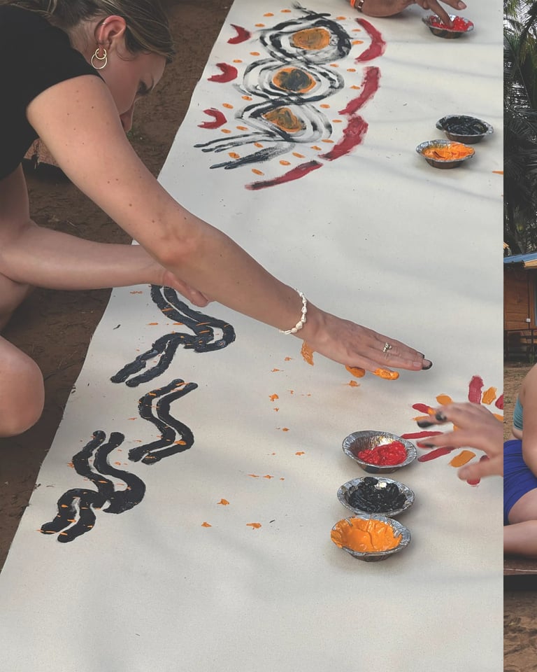 The Canvas of Connection is a lived experience of presence, where art and yoga meet beyond structure and expectation. This gathering took place in Goa at Agastya Yoga Goa, surrounded by nature, warmth, and a shared intention to slow down and truly arrive. After a full day of yoga practice, breathwork, and quiet time in nature, we came together not to perform or create something perfect, but to be fully present. The body was open, the mind softened, and the heart ready to express without filters.